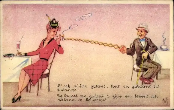 Künstler Ak Scheuermann, Willi, Mann gibt Frau Feuer