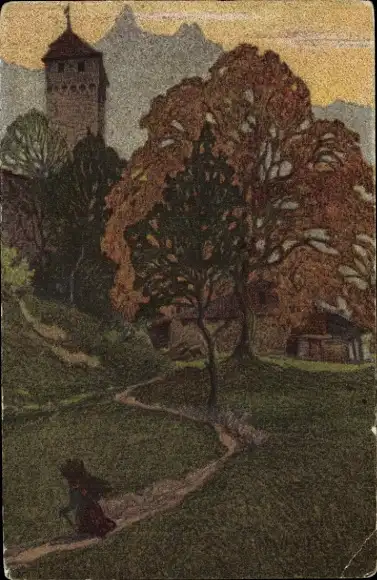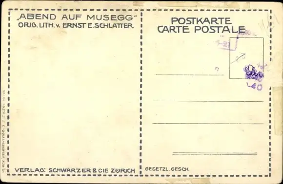 Künstler Ak Schlatter, Ernst, Luzern Stadt Schweiz, Abend auf Musegg