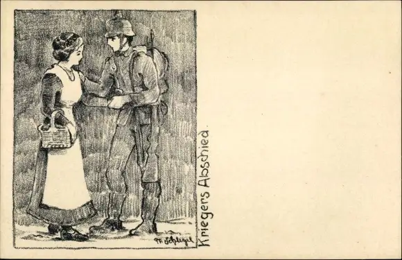 Künstler Ak Schlegel, Th., Kriegers Abschied, Soldatenliebe