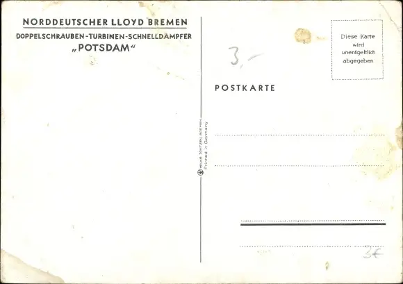 Künstler Ak Schmidt, R., NDL Doppelschrauben Turbinen Schnelldampfer Potsdam
