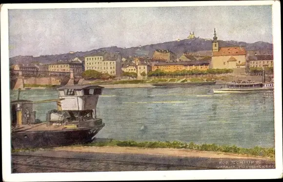 Künstler Ak Schmidt, Rud., Urfahr Linz in Oberösterreich, Pöstlingberg, Donaupartie, Salondampfer