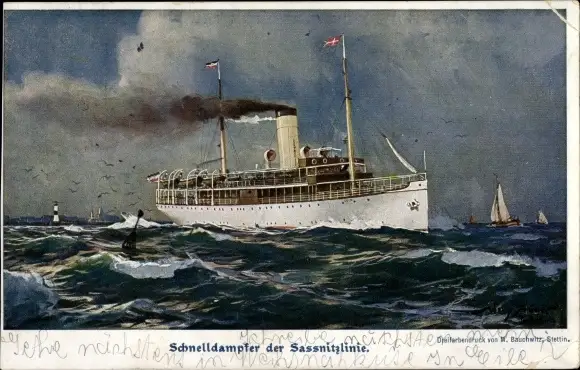 Künstler Ak Schnelldampfer der Sassnitzlinie, Reederei Braeunlich Stettin