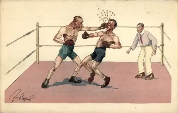 Künstler Ak Schönpflug, F., Boxkampf, Boxer, Angriff, Boxkämpfer