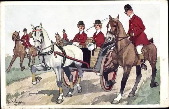 Künstler Ak Schönpflug, Fritz, Jagdgesellschaft, Reiter, Kutsche