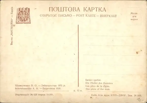 Künstler Ak Schowkunenko A. A., Dnipreistan 1931
