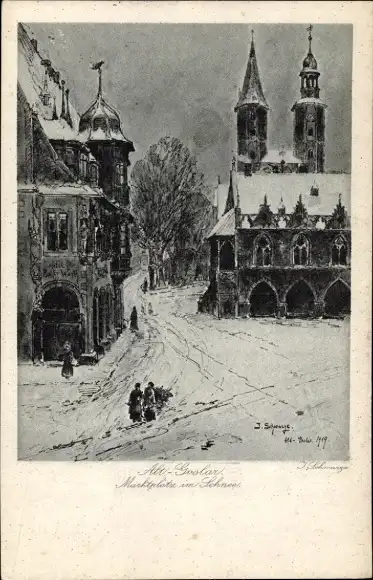 Künstler Ak Schwarze, J., Goslar am Harz, Marktplatz im Schnee