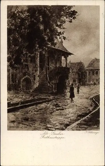 Künstler Ak Schwarze, J., Goslar am Harz, Rathaustreppe