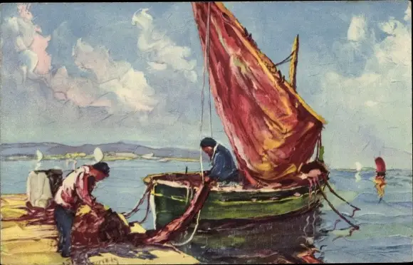 Ansichtskarte, Postkarte, Fischfang, Fischer, Angler, Perlenfischer, Fischerboot
