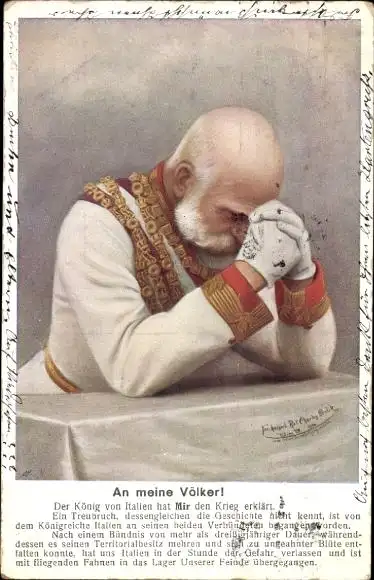 Künstler Ak Scolik, Kaiser Franz Joseph I im Gebet