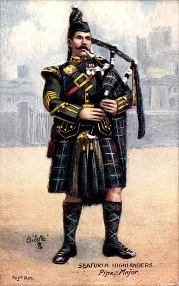 Künstler Ak Seaforth Highlanders, Pipe Major