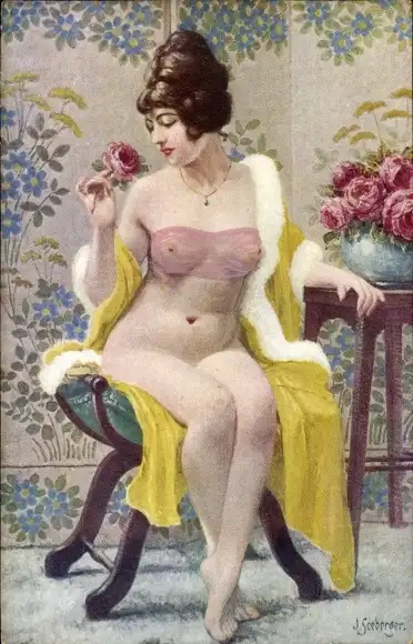 Künstler Ak Seebereer, J., Nackte Frau mit Rose, Erotik