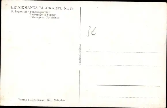 Künstler Ak Segantini, G., Frühlingsweide, Gebirge, Kuh