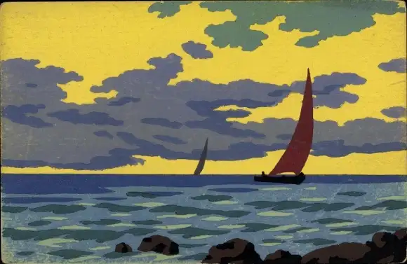 Künstler Ak Segelboot auf dem Meer