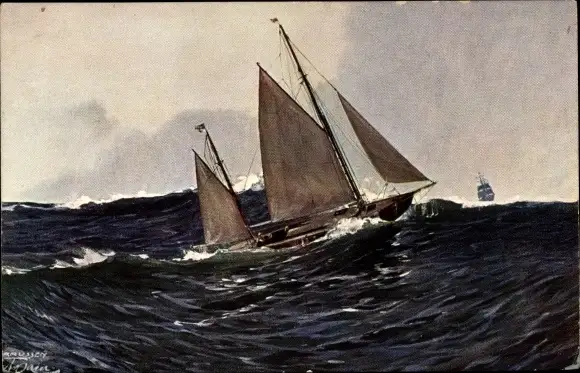 Künstler Ak Segelboot auf dem Meer, Wellengang