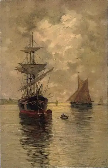Künstler Ak Segelschiff, Segelboot, Ruderboot
