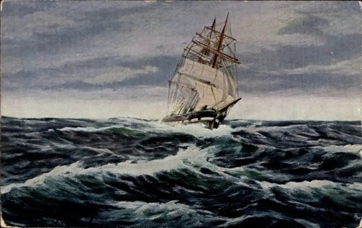 Künstler Ak Segelschiff in stürmischer See, Seepanorama
