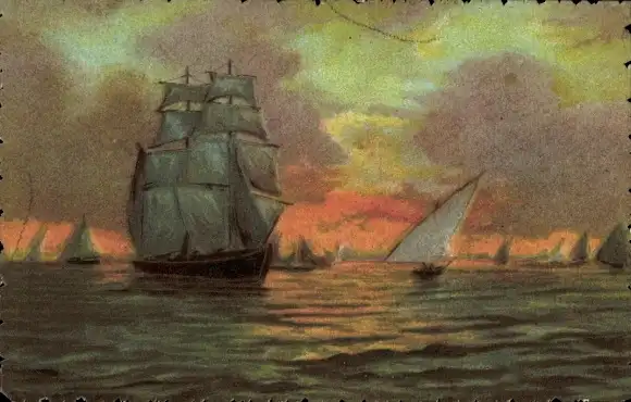 Künstler Ak Segelschiff und Segelboote auf dem Meer