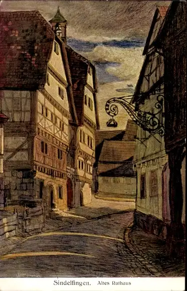 Künstler Ak Sindelfingen Kr. Böblingen, Straßenpartie, Altes Rathaus