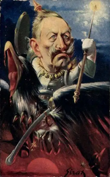 Künstler Ak Sirat, Karikatur, Kaiser Wilhelm II. auf einem Adler