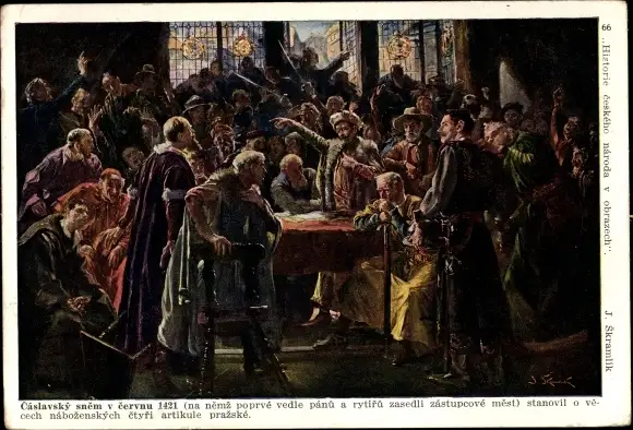 Künstler Ak Skramlík, Čáslav Tschaslau Mittelböhmen, Versammlung 1421