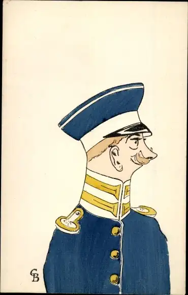 Künstler Ak Soldat in Uniform, Karikatur, Mütze