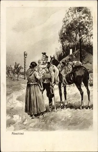 Künstler Ak Soldat nimmt Abschied von Frau und Kind
