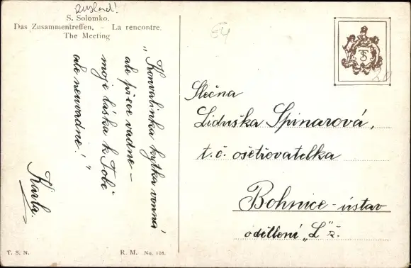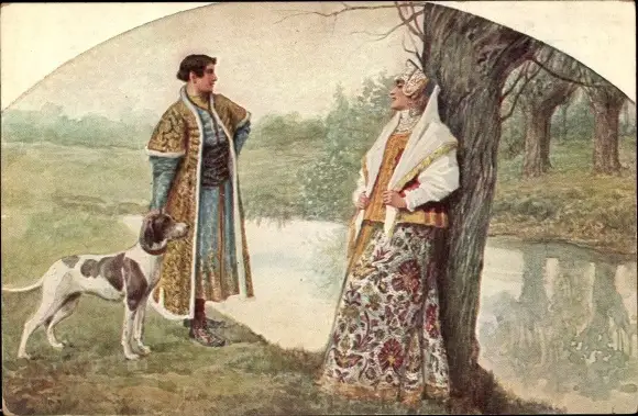 Künstler Ak Solomko, Das Zusammentreffen, russische Trachten