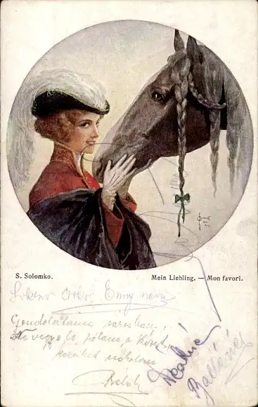 Künstler Ak Solomko, S., Mein Liebling, Frau mit Pferd