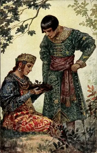 Künstler Ak Solomko, S., Nest, Russisches Paar in Trachten