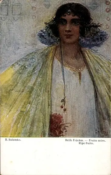 Künstler Ak Solomko, S., Reife Früchte, Frauenportrait, Kirschen