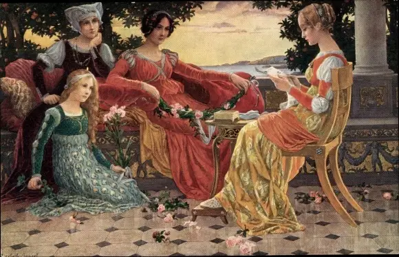 Künstler Ak Sonrel, Abend-Dichtung, junge Frauen