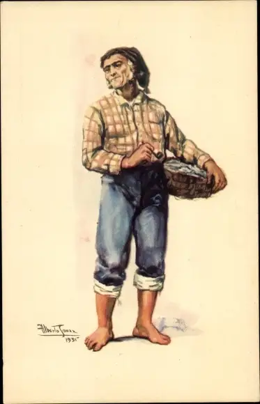 Künstler Ak Souzz, Alberto, Portugal, Bauer, Pfeife