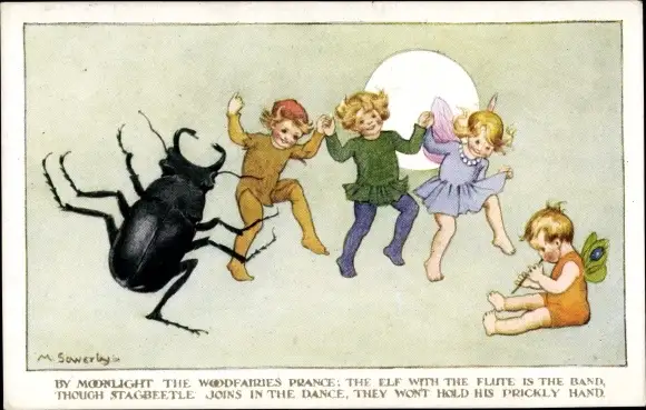Künstler Ak Sowerby, M., By Moonlight the Woodfairies prance, elf, stagbeetle