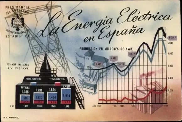 Künstler Ak Spanien, Elektrische Energie, Kraftwerk, Diagramm