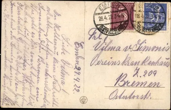 Zustand, siehe Scan, gelaufen, 1922 - ca 14 cm X 9 cm