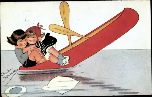 Künstler Ak Spark, Chicky, Junge und Mädchen in einem Kanu