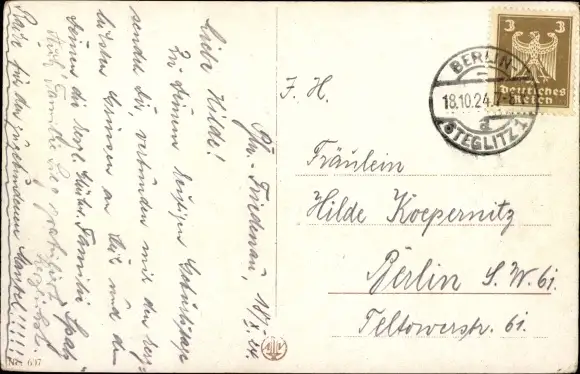 Zustand, siehe Scan, gelaufen, 1924 - ca 9 cm X 14 cm