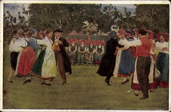 Künstler Ak Spindler, C., Tanzende Paare in Elsässer Tracht