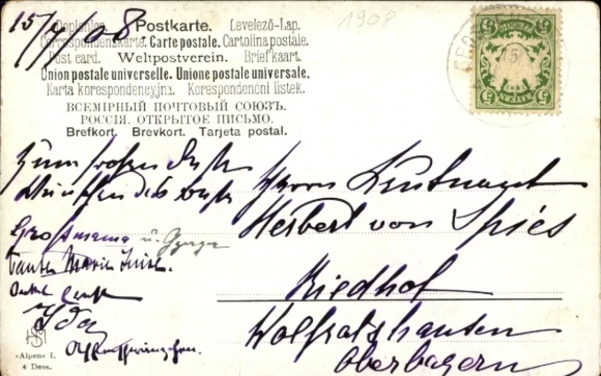 Zustand siehe Scan, gelaufen 1908 - ca 14 cm X 9 cm