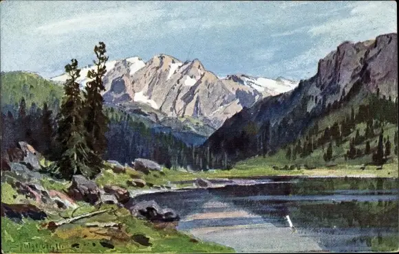 Künstler Ak Splitgerber, Gebirgslandschaft, See