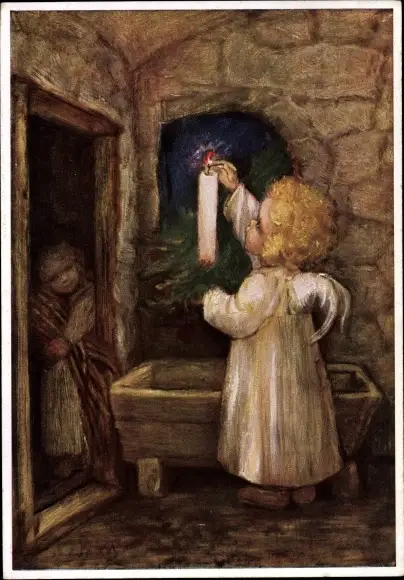 Künstler Ak Spötl, Maria, Engel entzündet Kerze