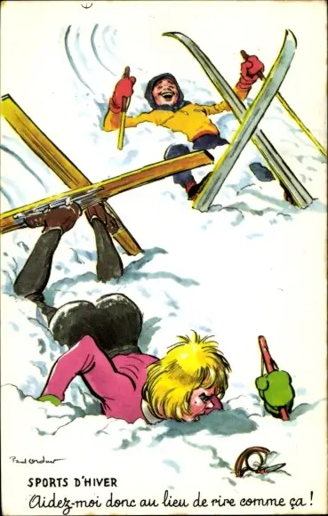 Künstler Ak Sports d'Hiver, Skifahrer sind gestürzt