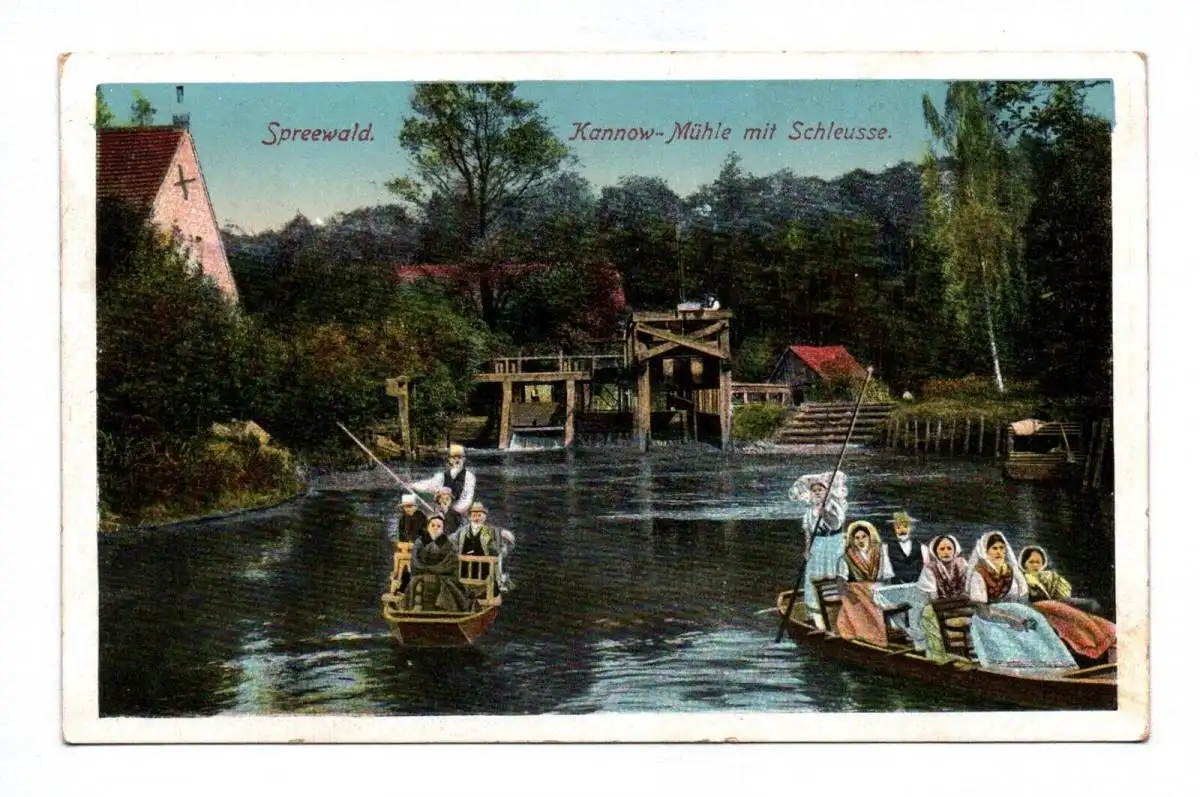 Künstler Ak Spreewald Kannow Mühle mit Schleusse Golßen