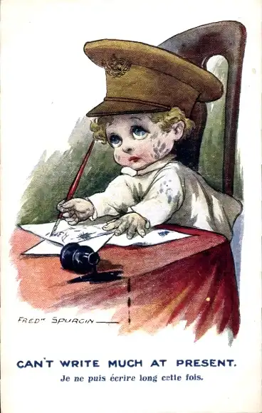Künstler Ak Spurgin, Fred, Junge in britischer Uniform schreibt einen Brief