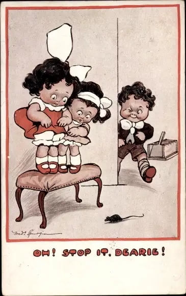 Künstler Ak Spurgin, Fred, Oh Stop it, Dearir, Junge hat Maus freigelassen, Mädchen auf einem Hocker