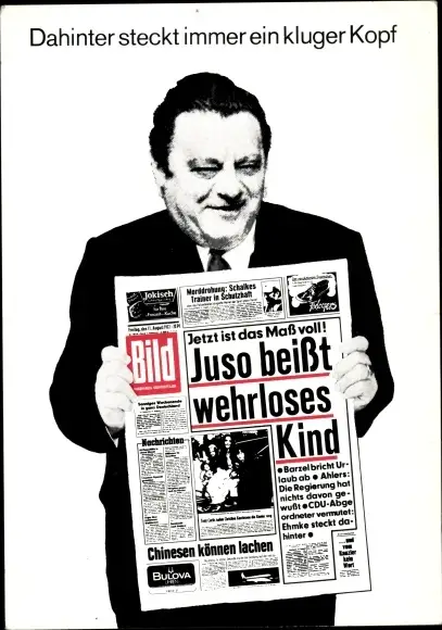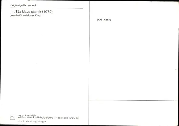 Künstler Ak Staeck, Klaus, Juso beißt wehrloses Kind, Franz Josef Strauß