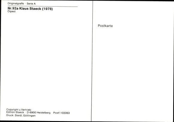Zustand, siehe Scan, ungelaufen- Klaus Staeck Serie A Nr. 92a - ca 11 cm X 15 cm