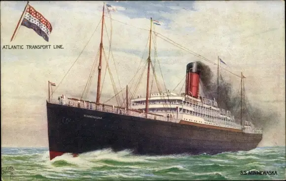 Künstler Ak Steamer SS Minnewaska, Red Star Line, Dampfer, Atlantic Transport Line