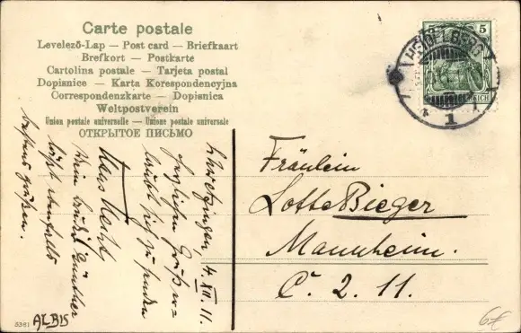 gelaufen 1911, leicht fleckig, sonst guter Zustand