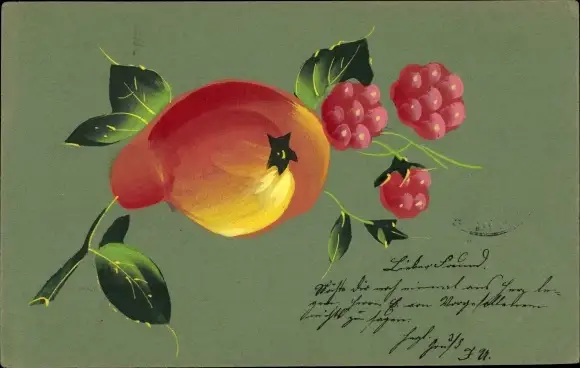 Künstler Ak Stillleben, Himbeeren, Früchte